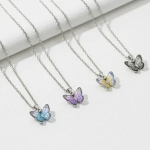 Butterfly Necklace Set – Lightweight Multicolor Butterfly Pendant with Coordinated Chain