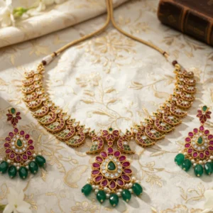 Ruby Emerald Mango Necklace Set | Traditional Jewelry