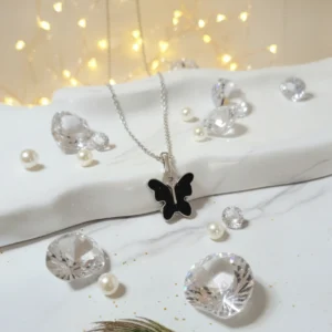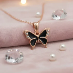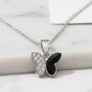 Dual-Tone Sparkle Butterfly Necklace – Elegant Black & Clear Crystal
