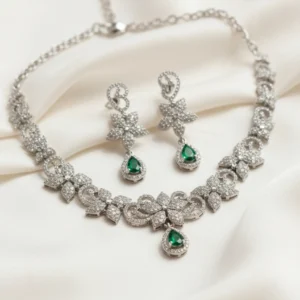 Emerald Bloom AD Choker Necklace Set