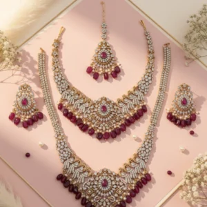 Ruby AD Bridal Set Choker Haram Tikka | Complete Wedding Jewelry