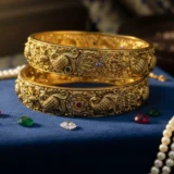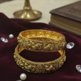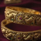 Be the first to review “Antique Gold Peacock Bangles with Ruby Emerald Stones | Traditional Nakshi Bangles”
