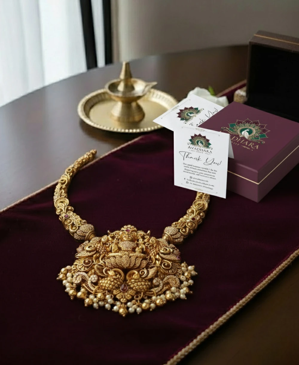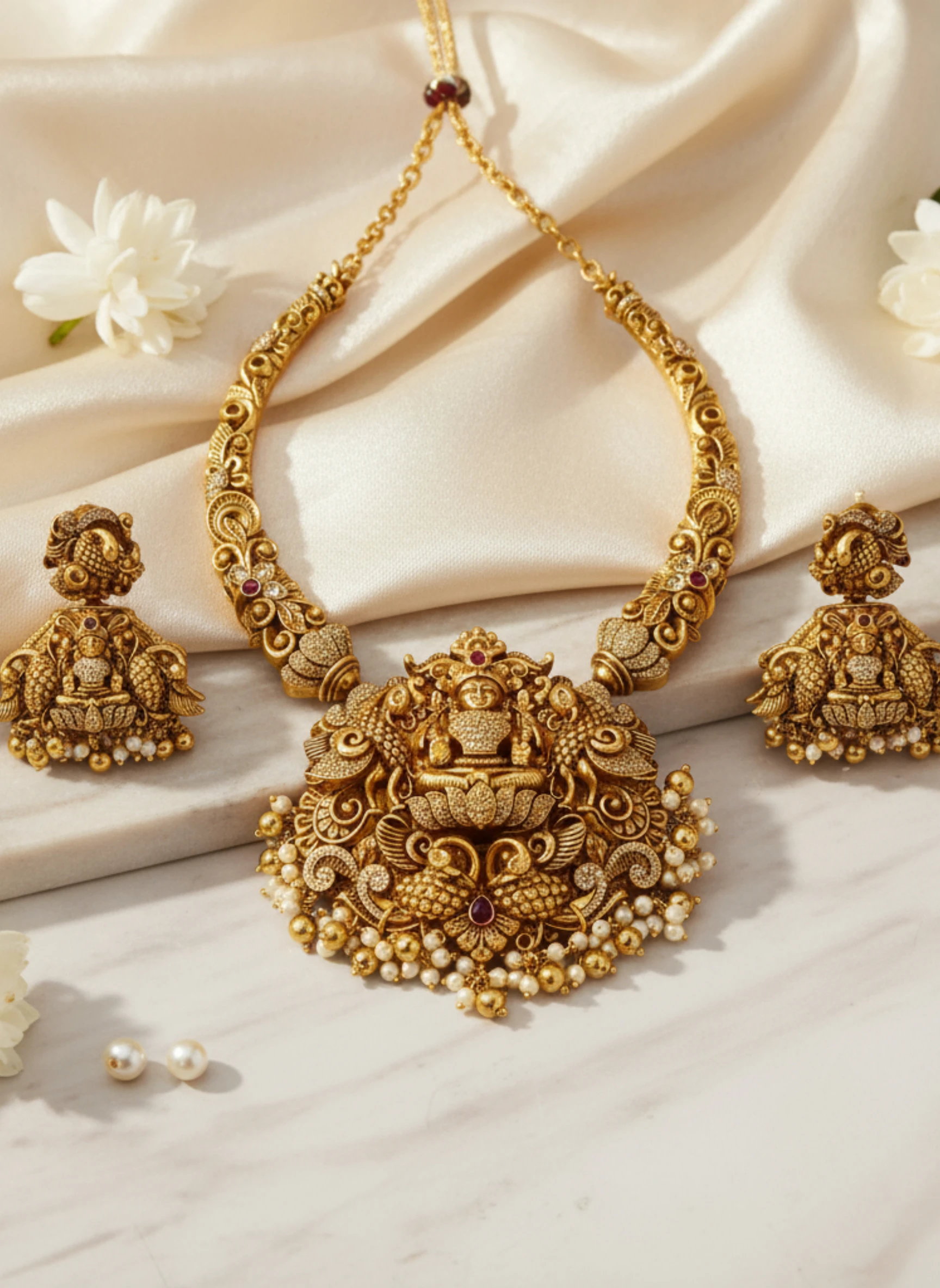 | Necklace Type | Statement temple necklace with Lakshmi pendant |