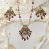 Be the first to review “Antique Lord Venkateswara Temple Necklace Set with Ruby & Pearl Beads”