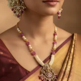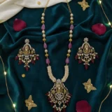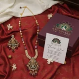 • Long Haram Necklace: Elegant 20–24 inch design with symmetrical ruby and pearl accents on both sides.