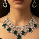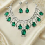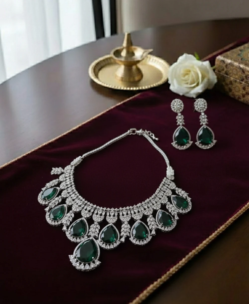 Be the first to review “Emerald Green Diamond-Look Necklace Set – Silver-Tone Crystal Statement Jewelry with Matching Drop Earrings | Bridal & Party Wear”