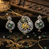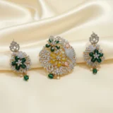 Be the first to review “Emerald Green CZ Floral Pendant Set with Earrings | American Diamond Jewellery”