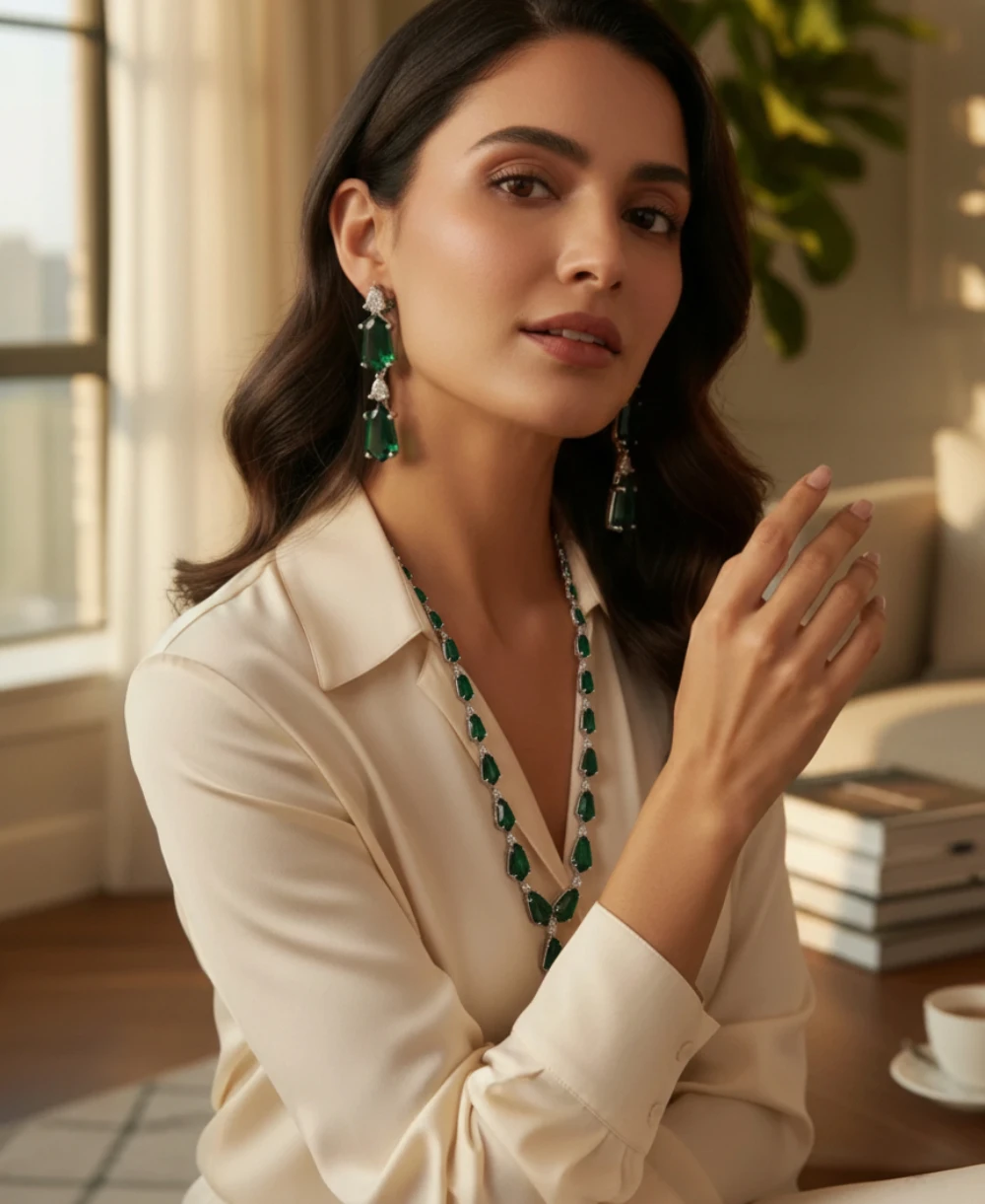 - Elegant Emerald Radiance: Deep green stones symbolize grace, prosperity, and timeless beauty.