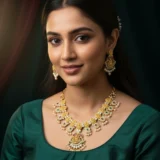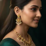 Be the first to review “Lakshmi Temple Mango Necklace Set with Polki Stones & Pearl Drops | Traditional South Indian Design”