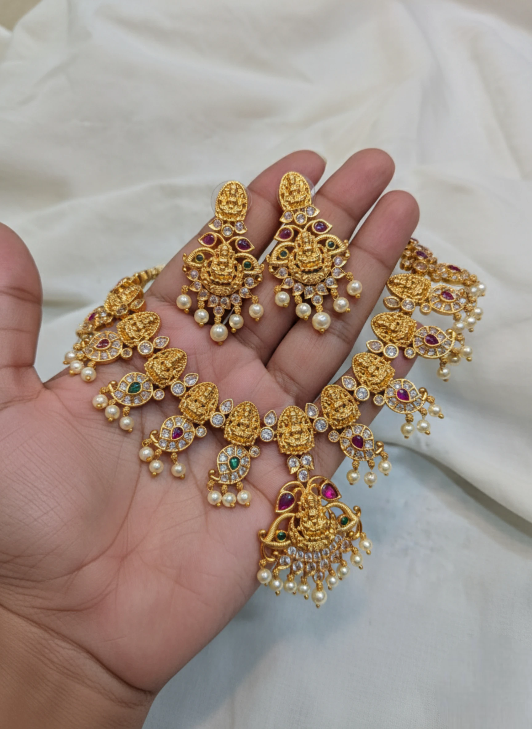 - 1 Grand Temple Necklace with Multiple Lakshmi Motifs