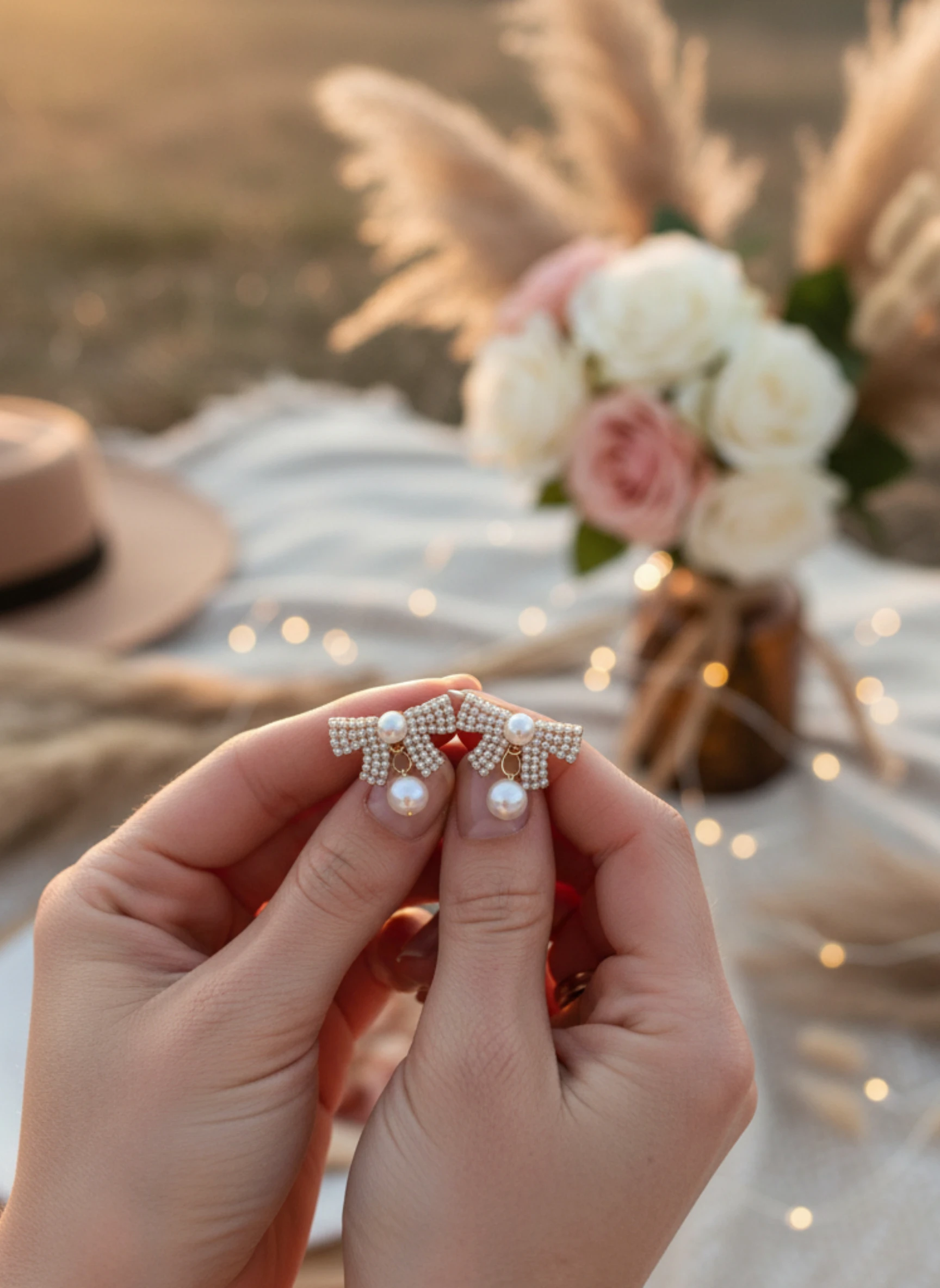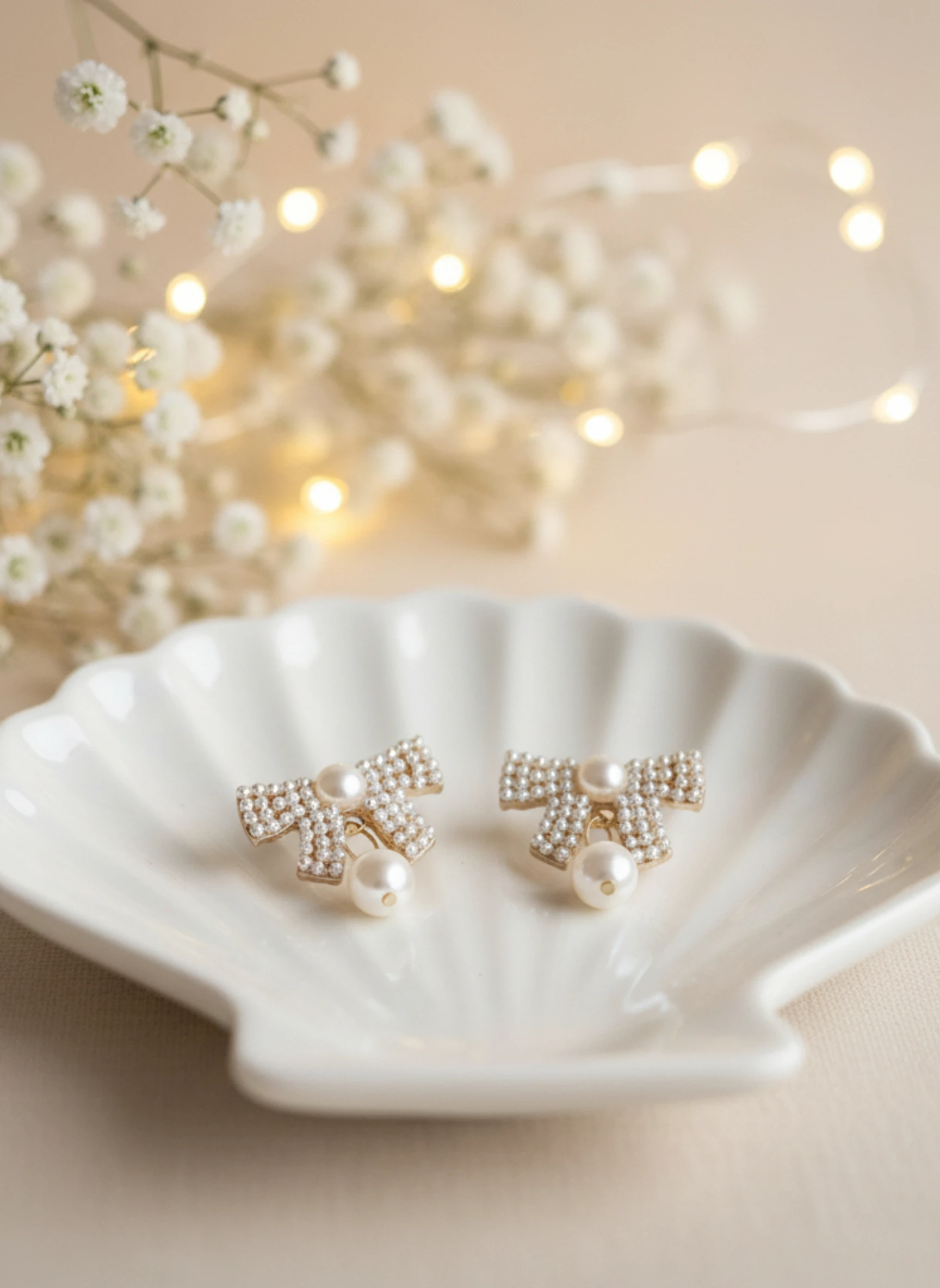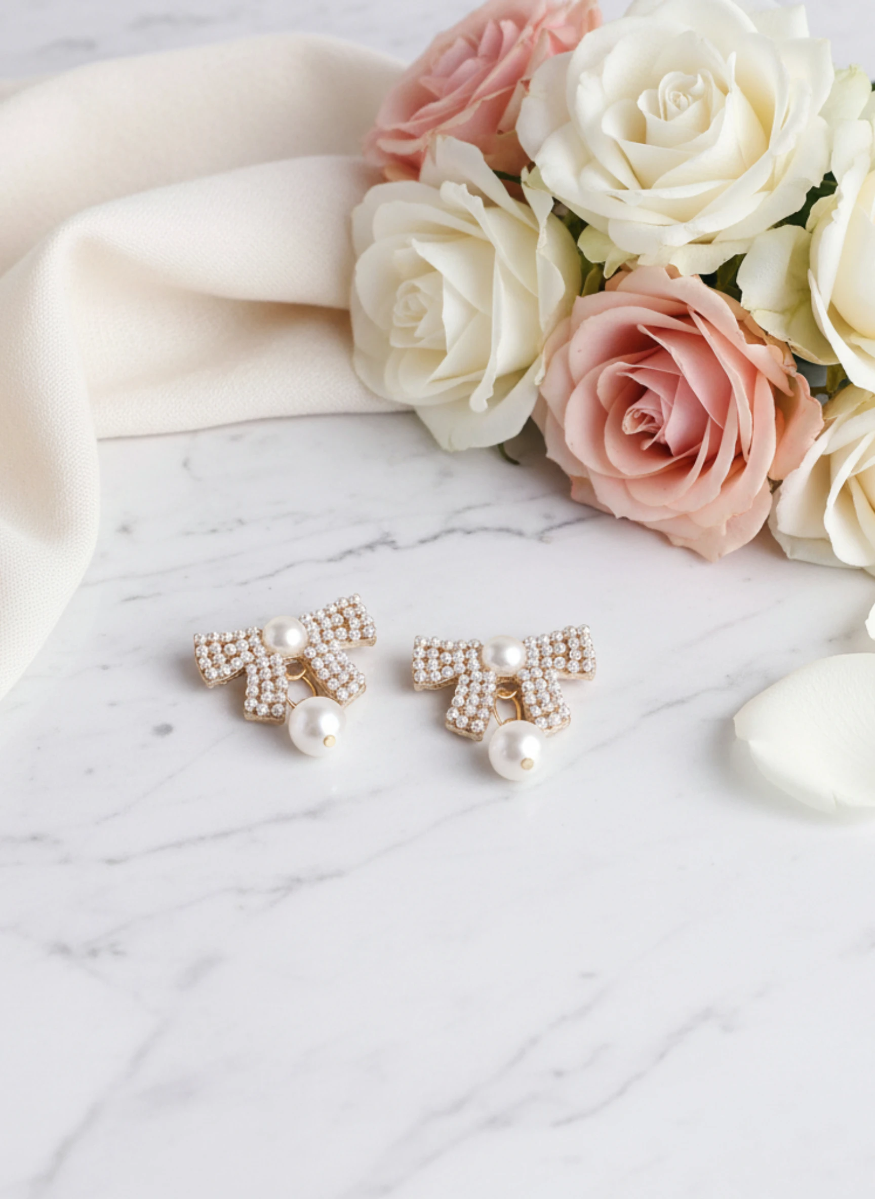 • 1 Pair of Mohini Moti Bow Drop Earrings (Left and Right)