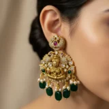 - Matching Lakshmi-studded jhumka earrings.