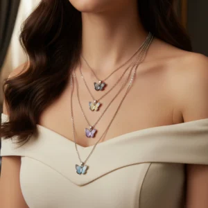 Butterfly Necklace Set – Lightweight Multicolor Butterfly Pendant with Coordinated Chain
