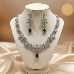 Emerald Bloom AD Choker Necklace Set