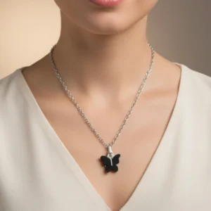 Silver Twilight Black Butterfly Necklace