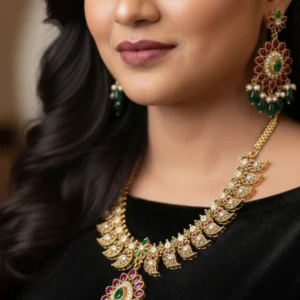 Ruby Emerald Mango Necklace Set | Traditional Jewelry