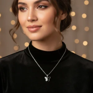 Dual-Tone Sparkle Butterfly Necklace – Elegant Black & Clear Crystal